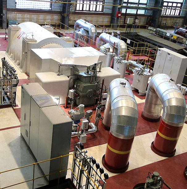 На первой очереди с параметрами пара у турбин 90 кгс/см2 и 510 °С установлены две паровых турбины - турбина ПТ-25-/30-8,8/1,0-1 с генератором ТФП-25-2/6,3, турбина Р-25-8,8/2 с генератором ТВС-30. Пароснабжение турбин первой очереди осуществляется от энергетических котлов второй очереди через РОУ 140/100.